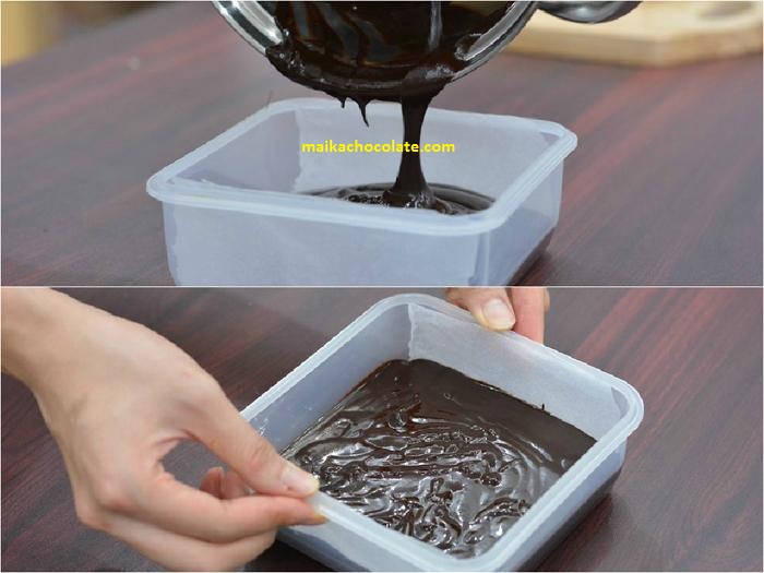 - Sau đó, để socola vào ngăn mát tủ lạnh khoảng 1 tiếng.