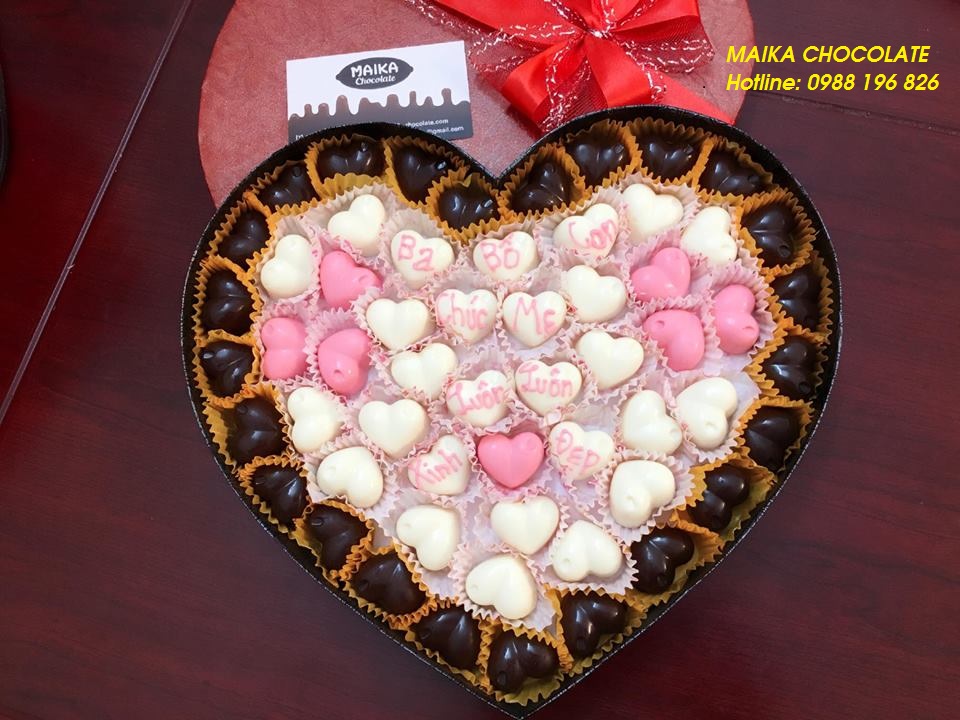 Để tìm kiếm được một hộp socola hoàn hảo, ưng ý cả về mẫu lẫn chất lượng mà có thể làm theo yêu cầu của các bạn. Các bạn có thể ghé qua cửa hàng MAIKA CHOCOLATE ở ngõ 100 Hoàng Quốc Việt để đặt nhé. Shop maika nằm trong ngõ khá rộng, oto vào thoải mái, đường vào rất dễ tìm. Maika chocolate là cửa hàng rất nổi tiếng tại Hà Nội. Shop chuyên bán socola valentine, socola handmade, socola viết chữ theo yêu cầu. Có rất nhiều mẫu mã đẹp mắt, những mẫu hot trend của năm được bày bán tại Cửa hàng.